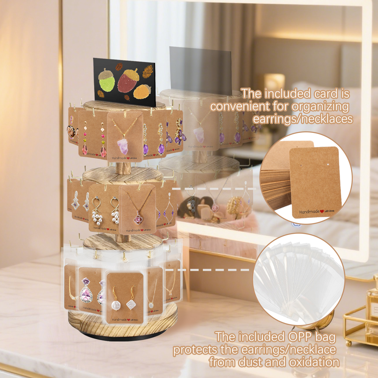 Package contents: 1pc Jewelry Earring Display Stand 50pcs Earring Holder Cards 50pcs Self-Seal Bags