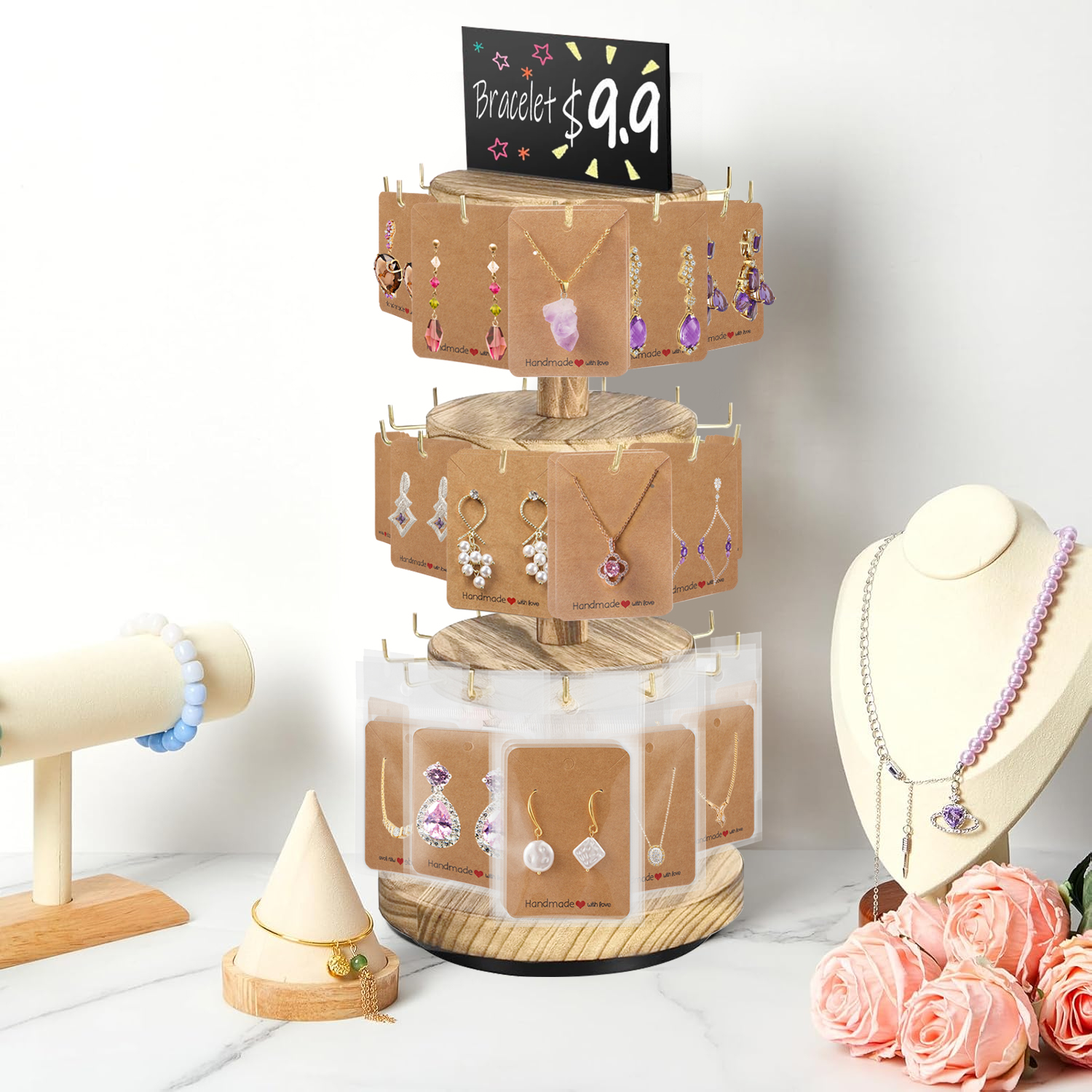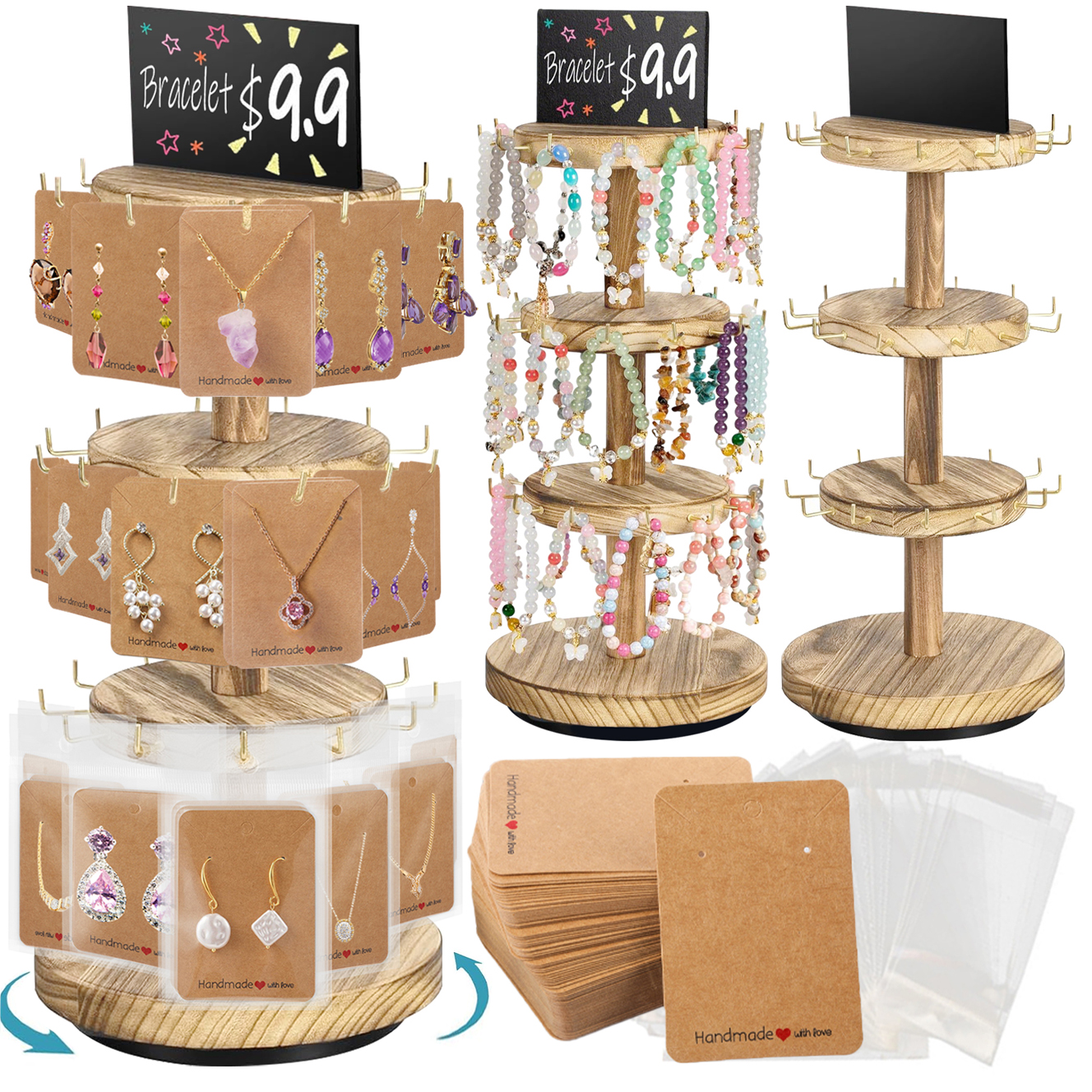 360 Rotating Earring Display Stands With 50 Earring Holder Cards